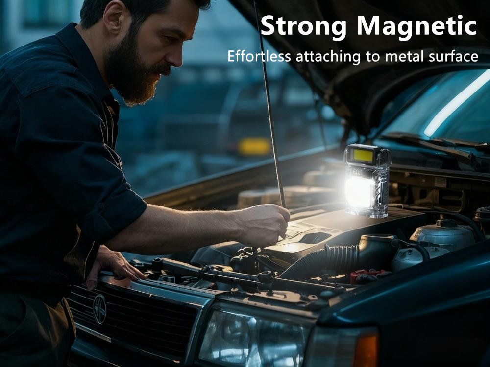 3. Double strong magnet at the tail, which can be used as vehicle repair lighting or as a warning light in emergencies. The main light can be rotated to achieve different Angle lighting.